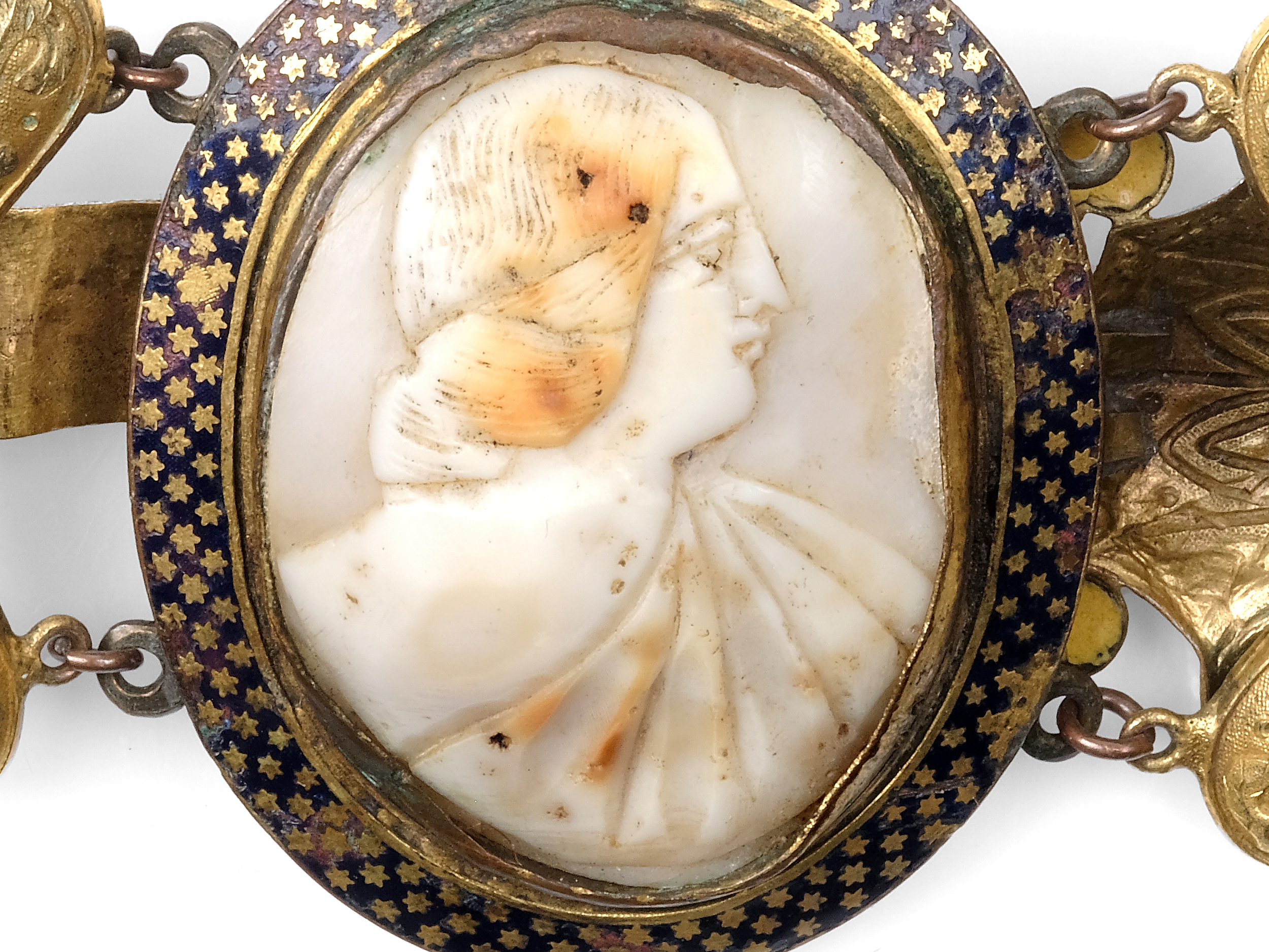 Mittig eine geschnittene Muschelkamee