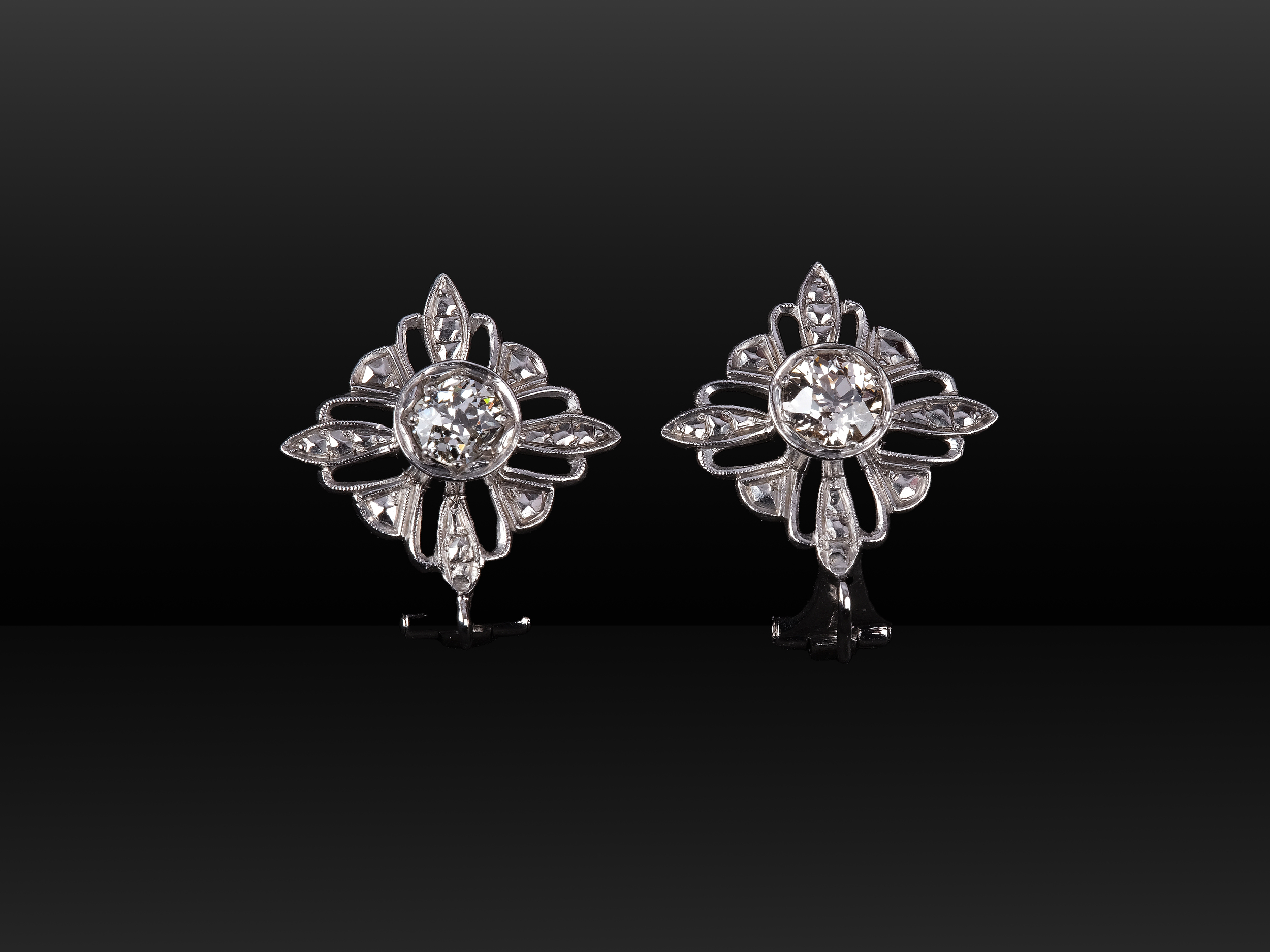 Besetzt mit je einem Altschliffdiamanten von ca. je 0,6 ct