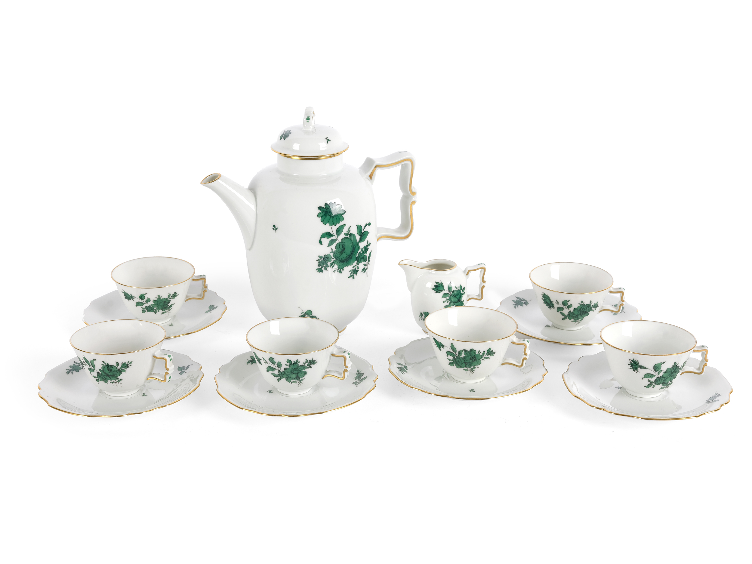 Porzellan grün staffiert & vergoldet