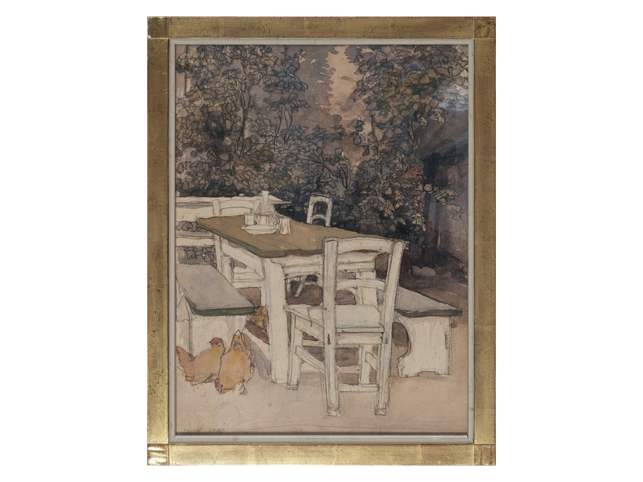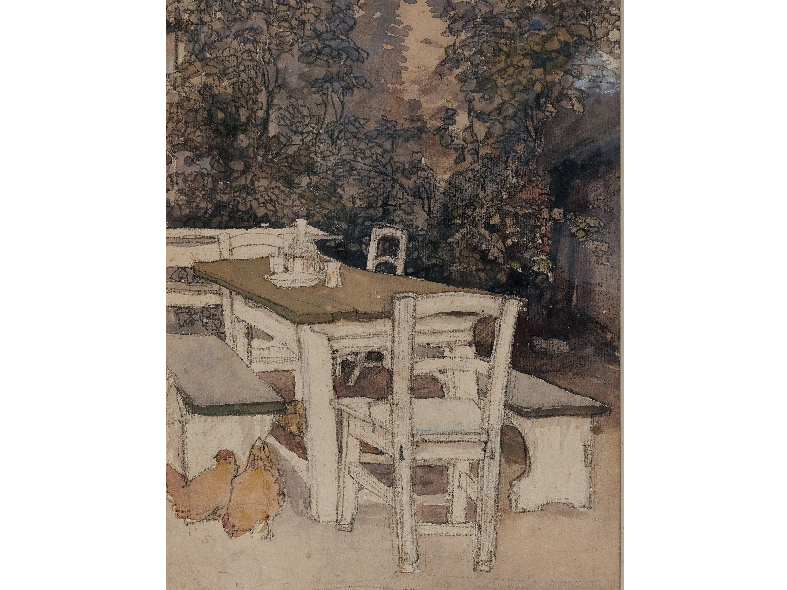Aquarell mit Hühnern