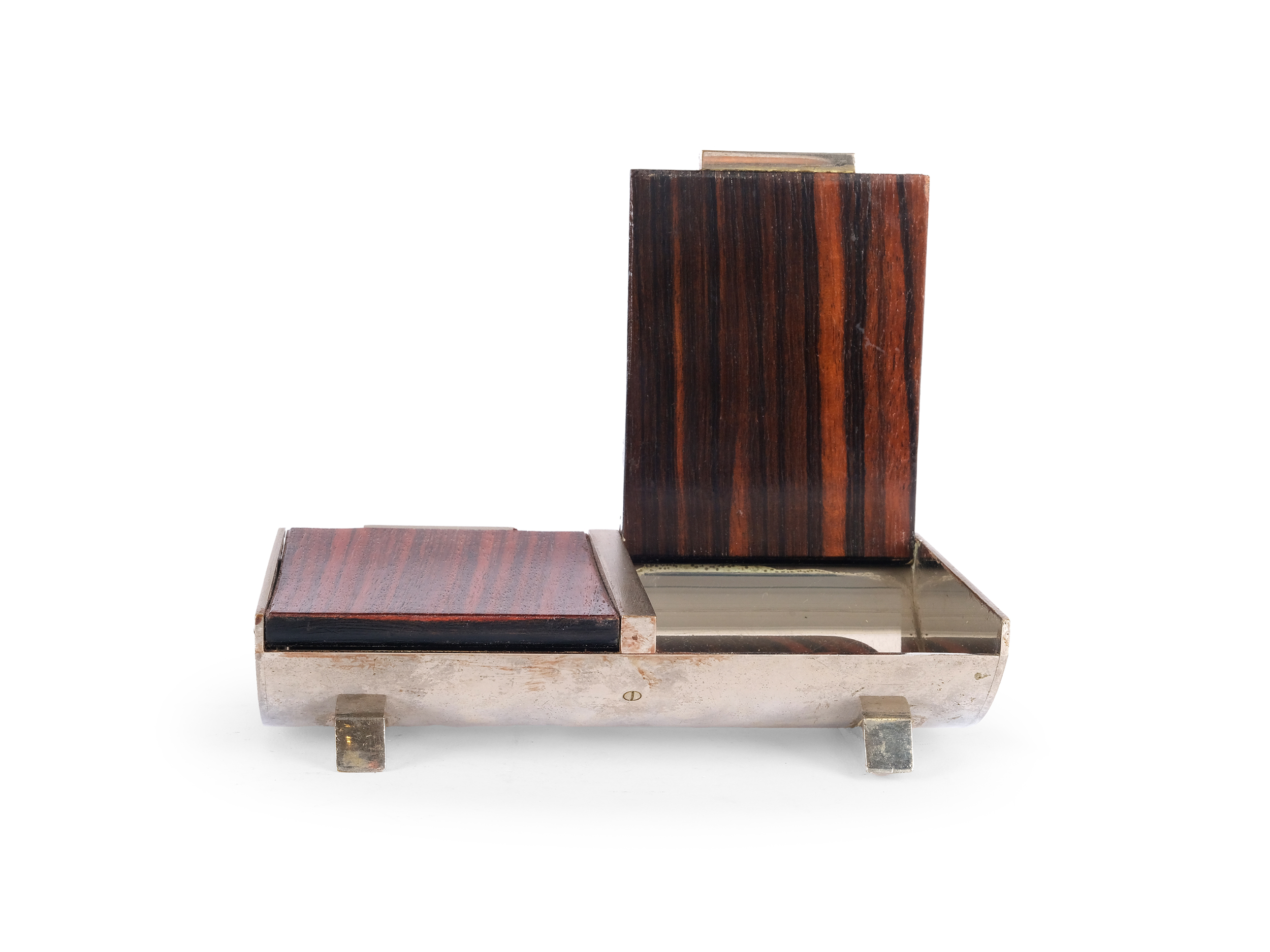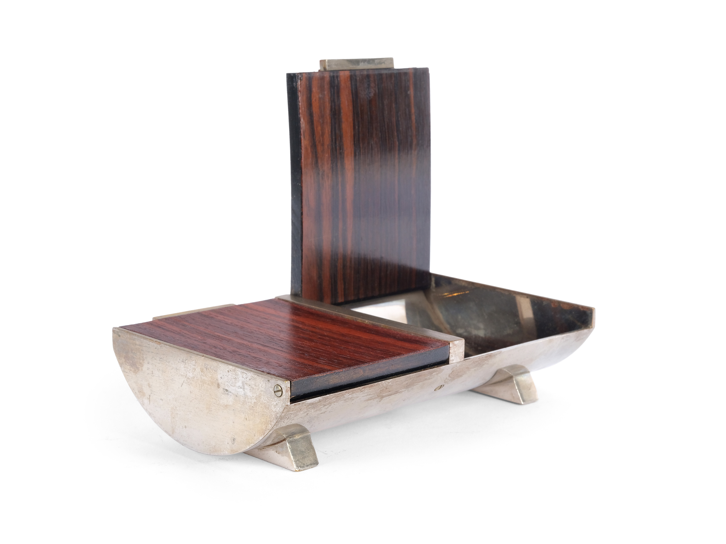 Dose aus Holz & Messing, vernickelt