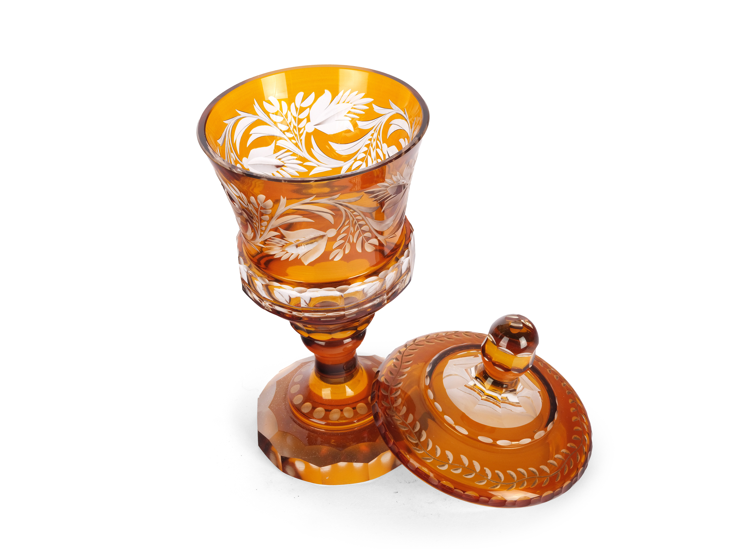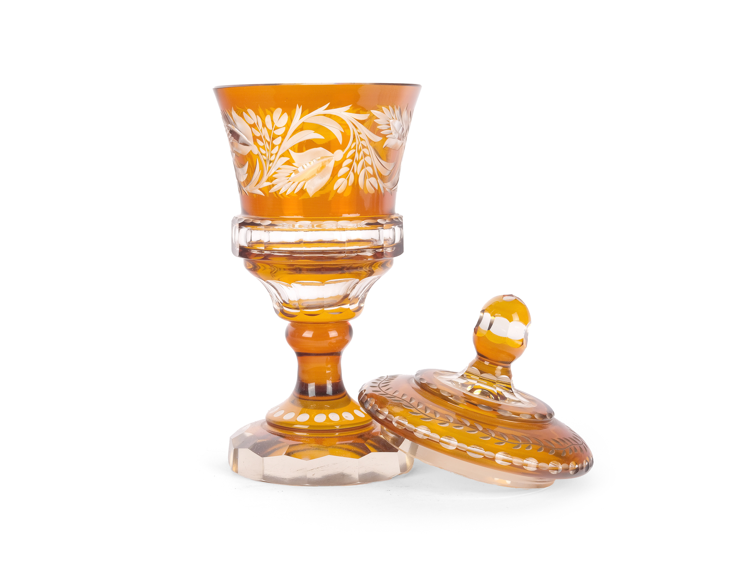 Colorless glass overlaid with amber