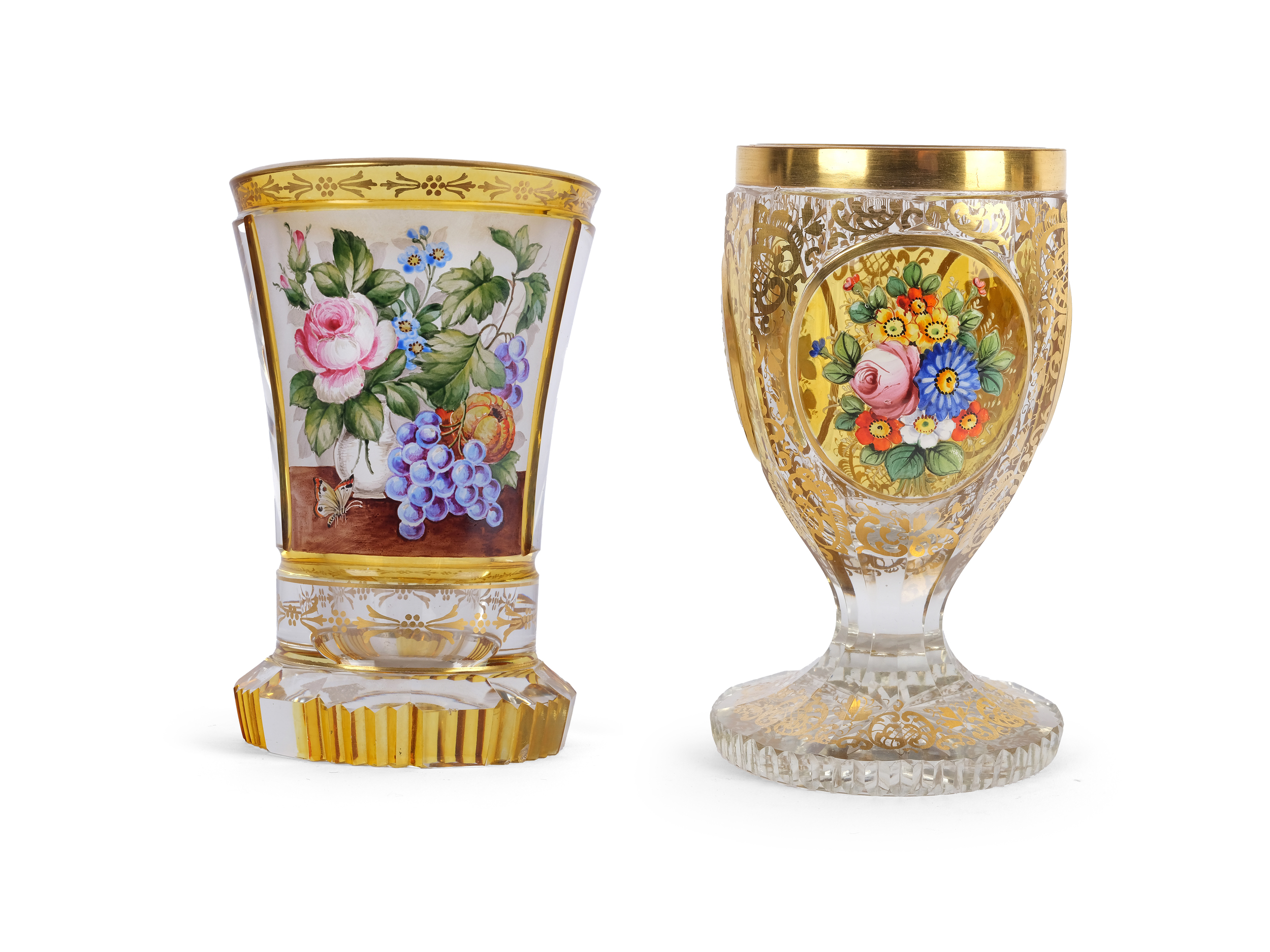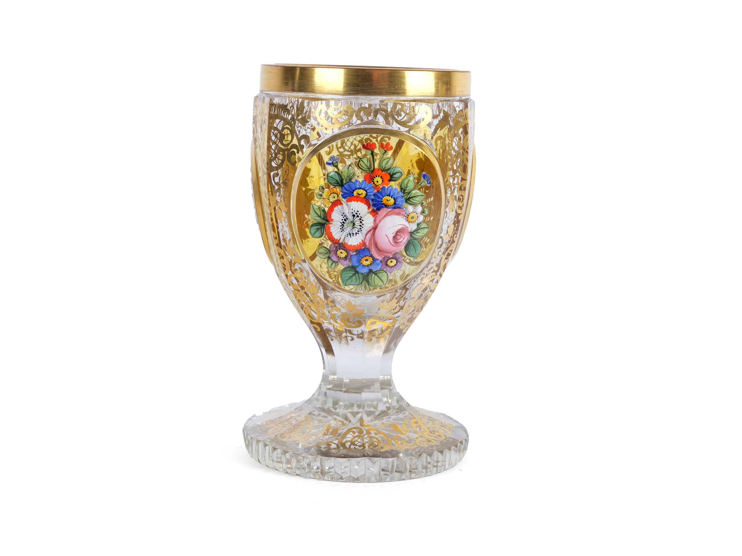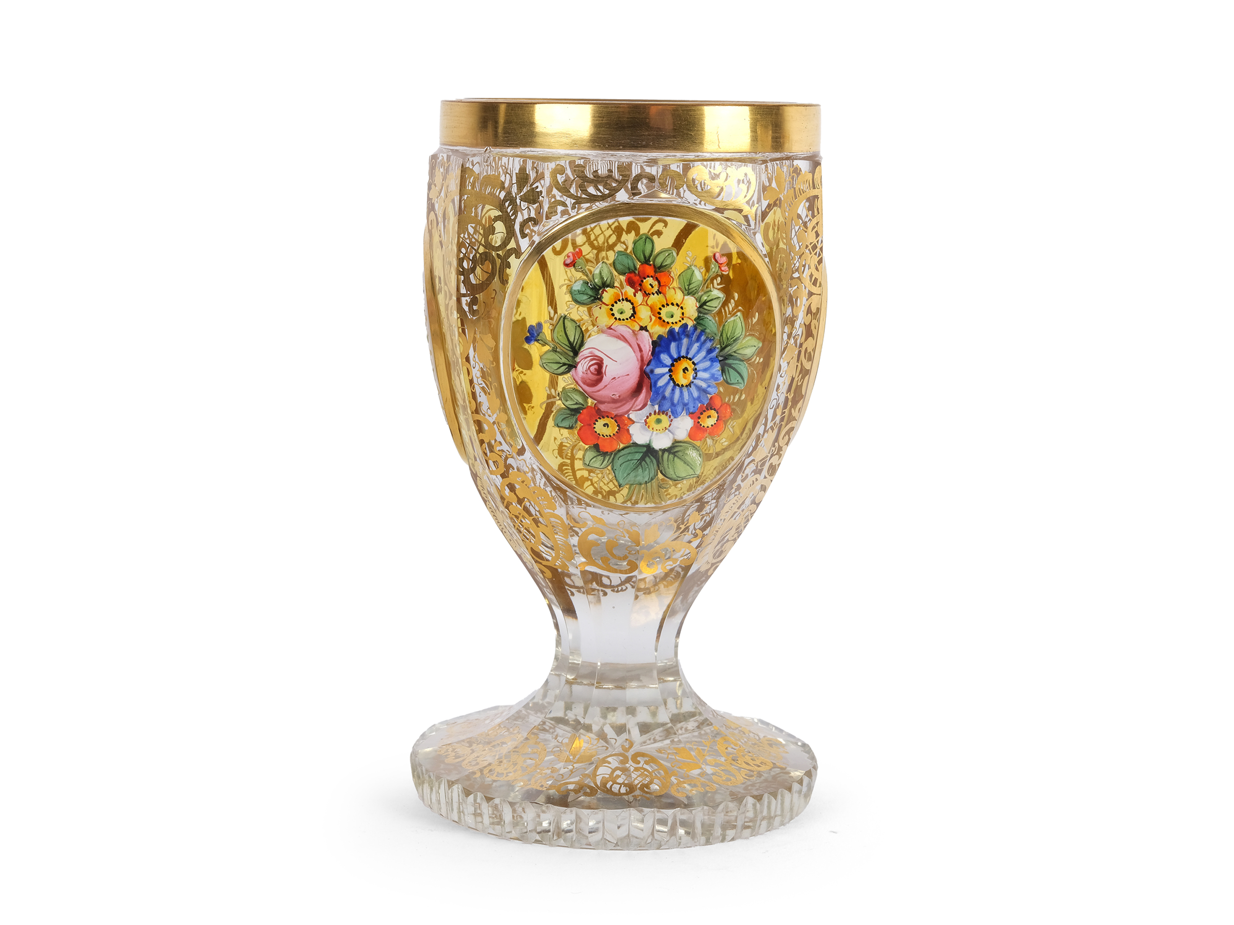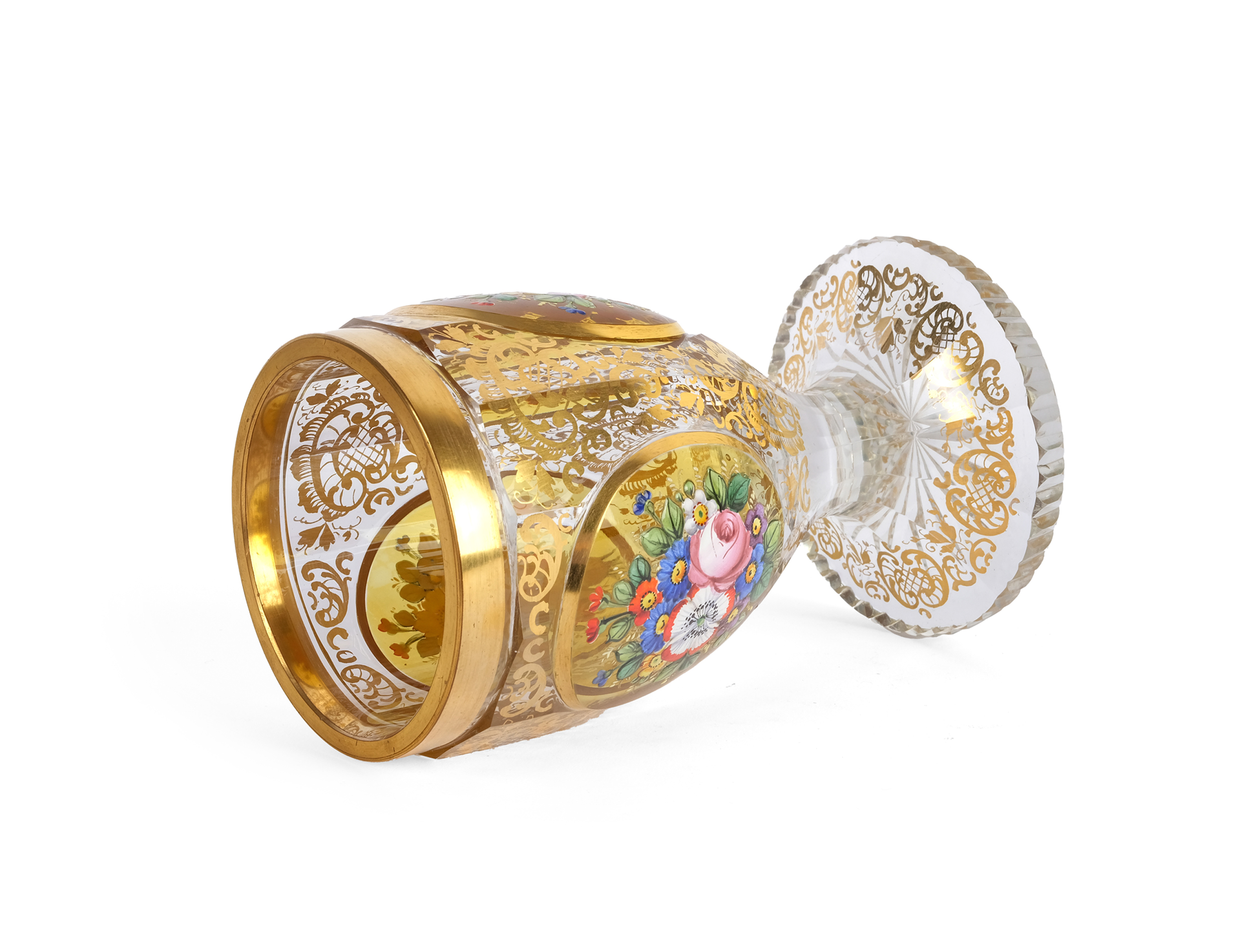 Colorless glass, colorfully painted & gilt