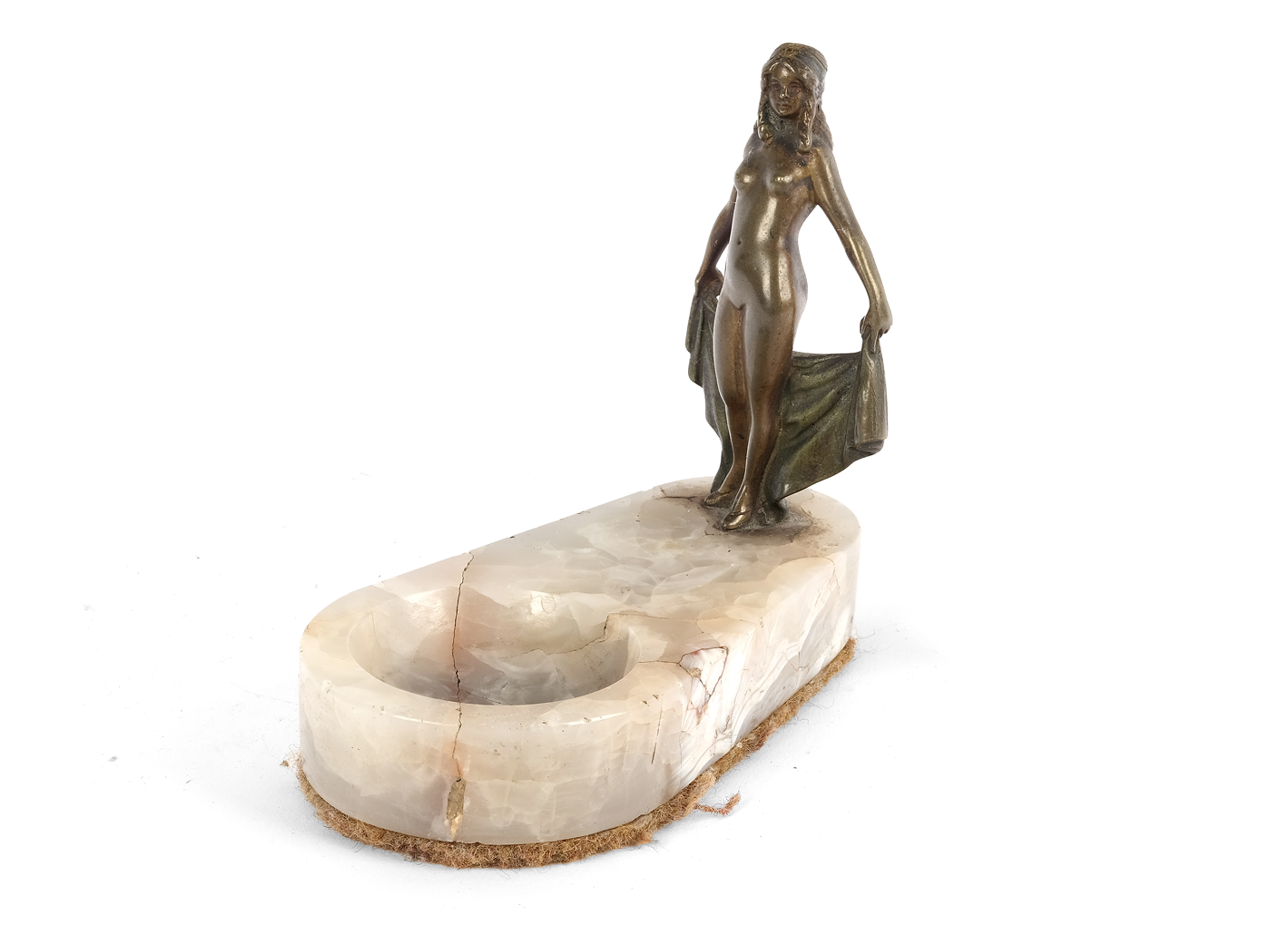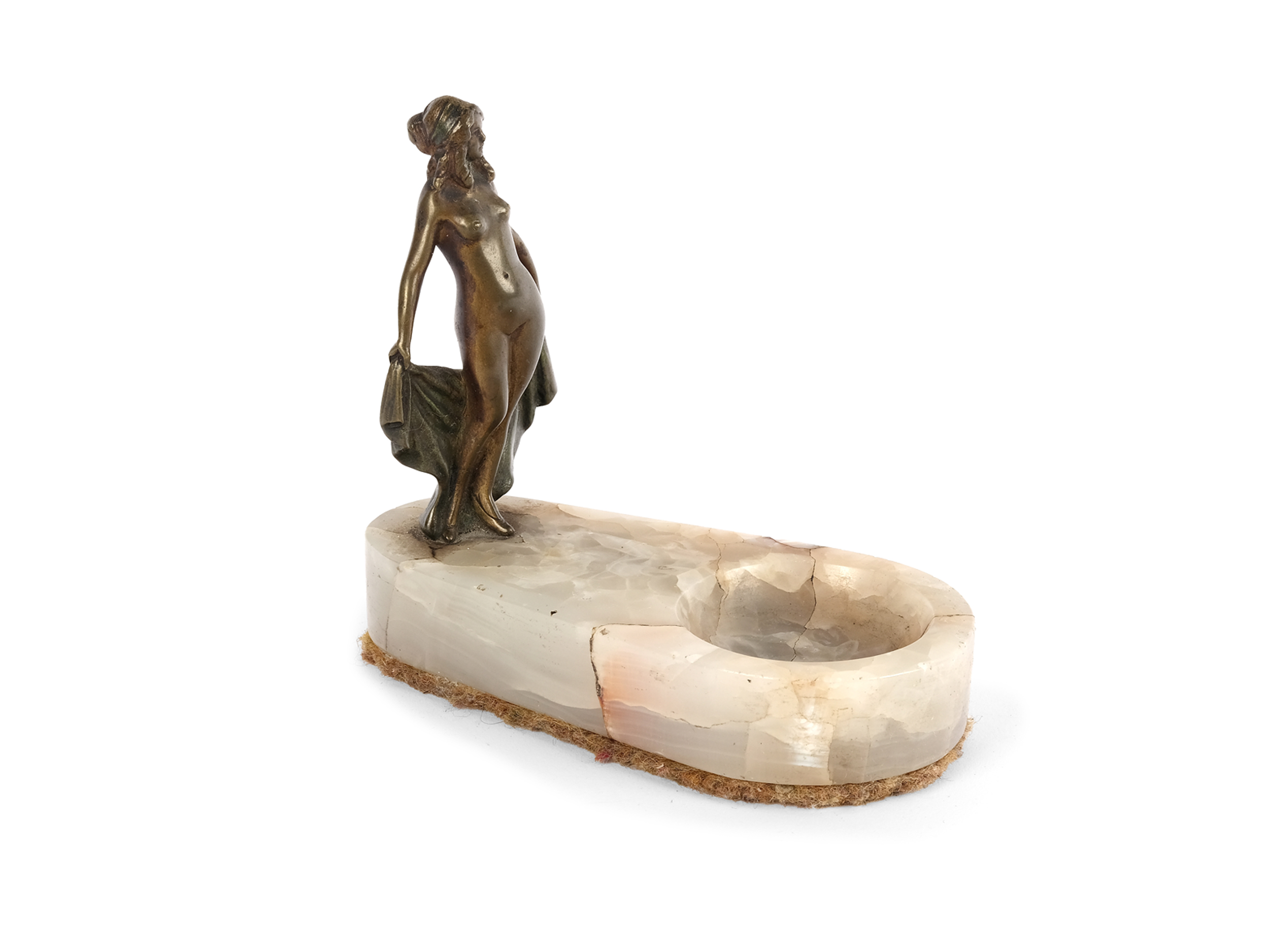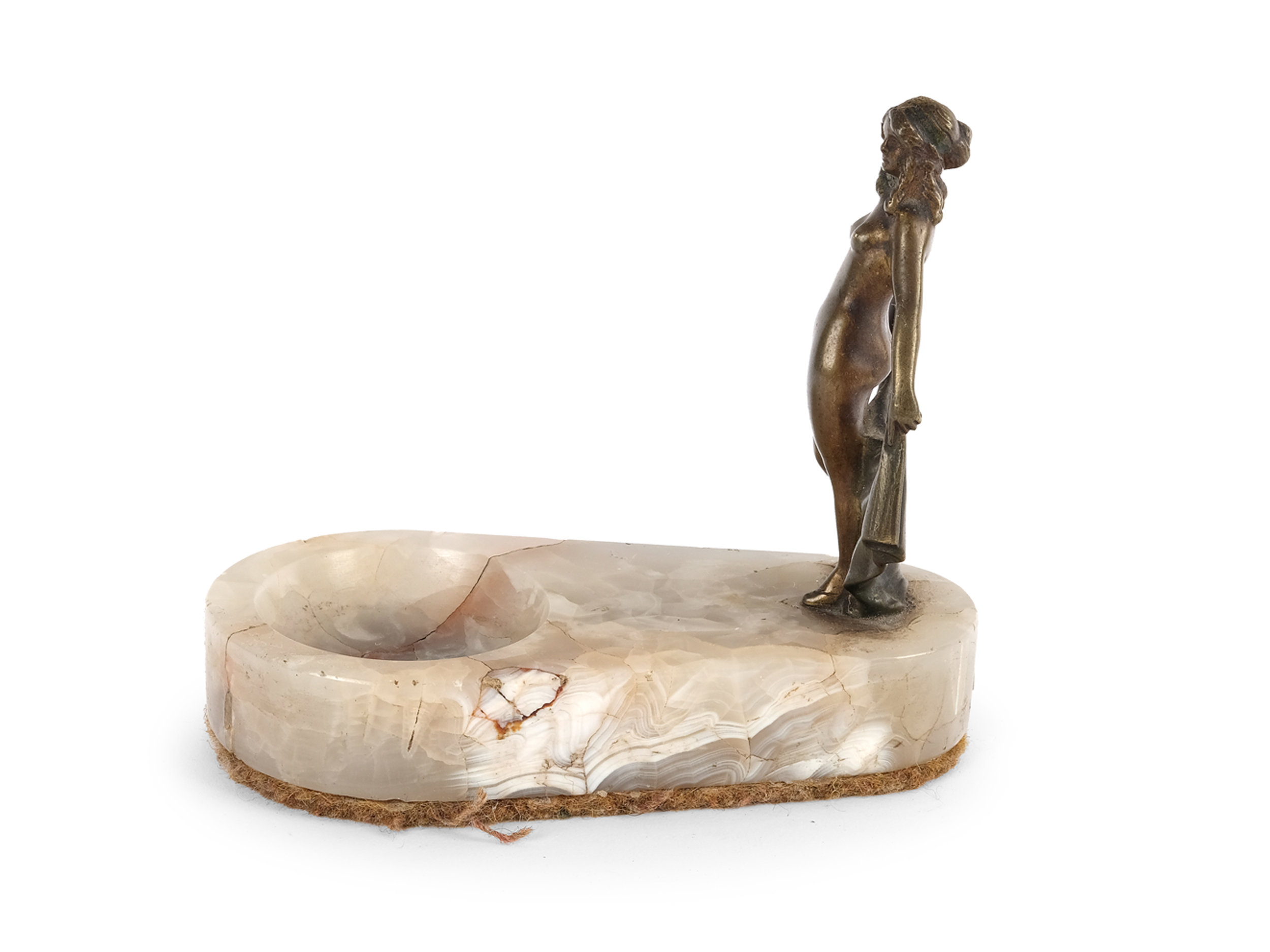 Dish stone, figure bronze
