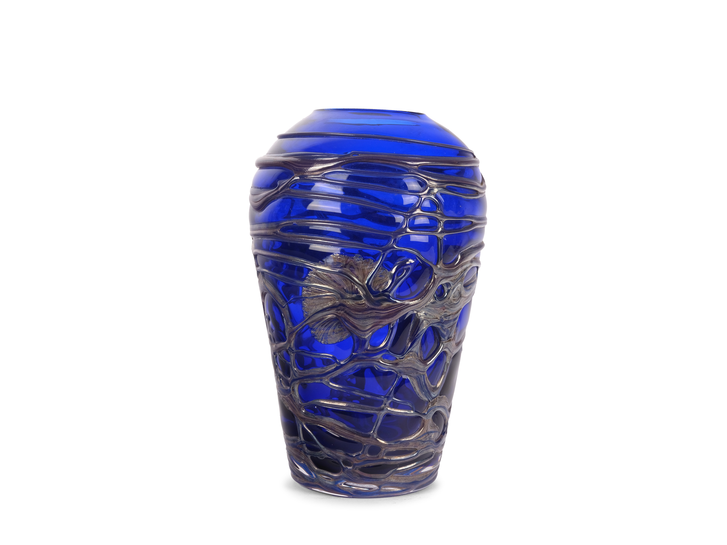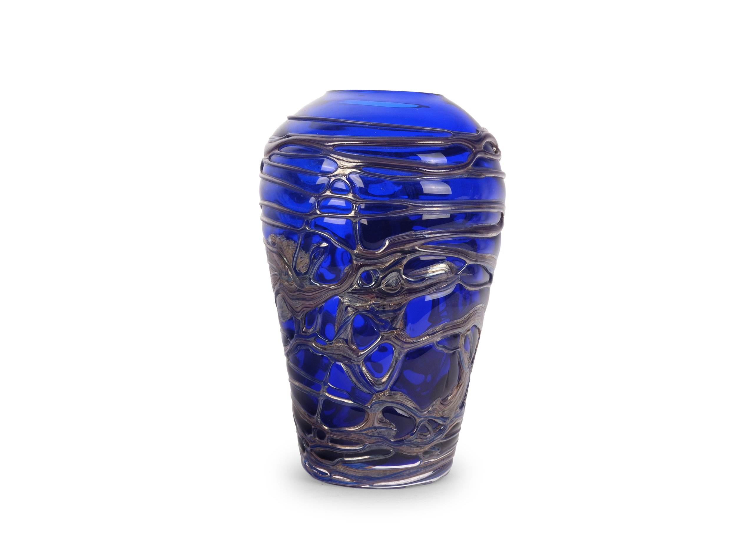 Dark blue glass with melted thread decoration