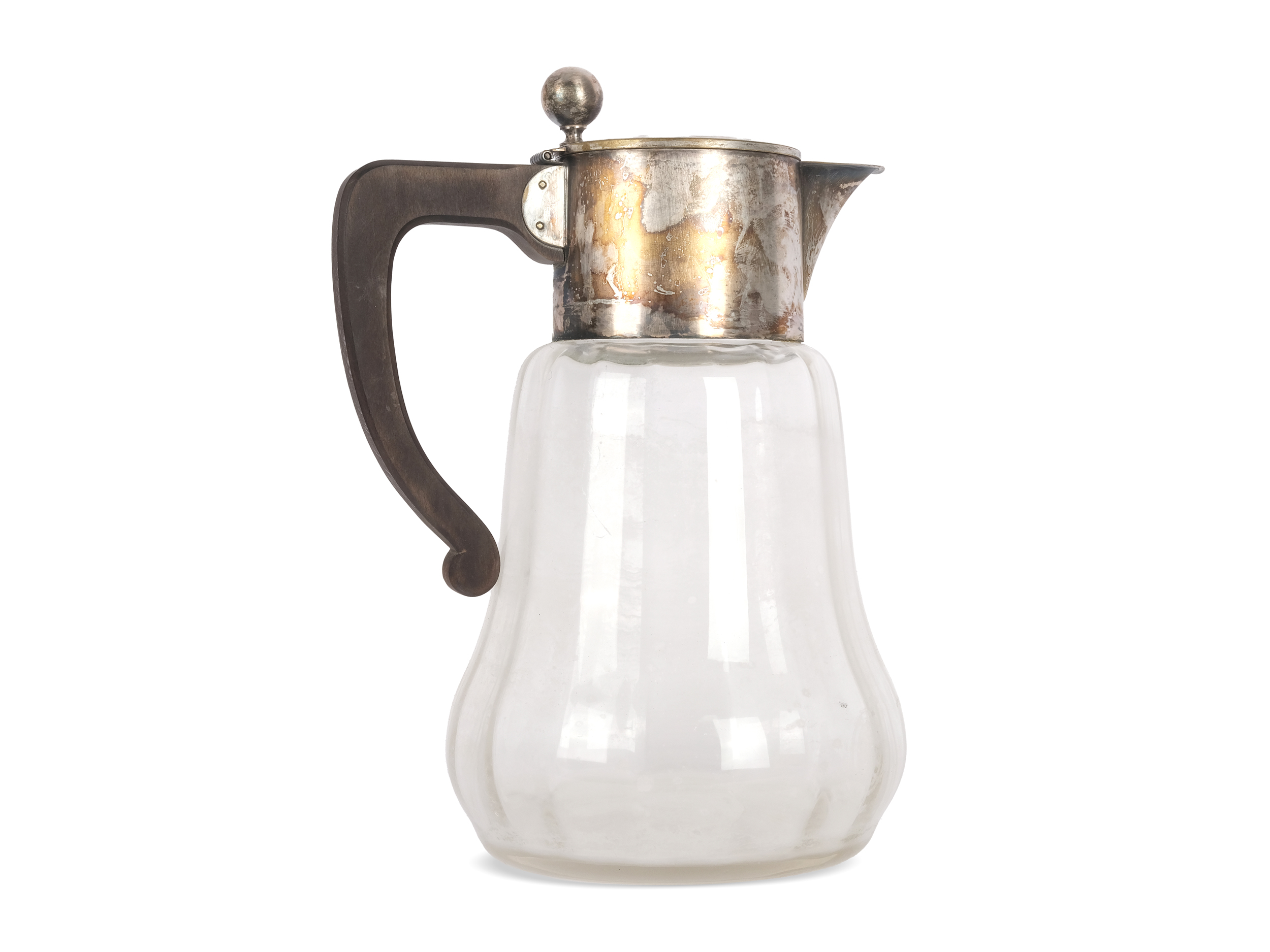 Metal mount, colorless glass, wooden handle
