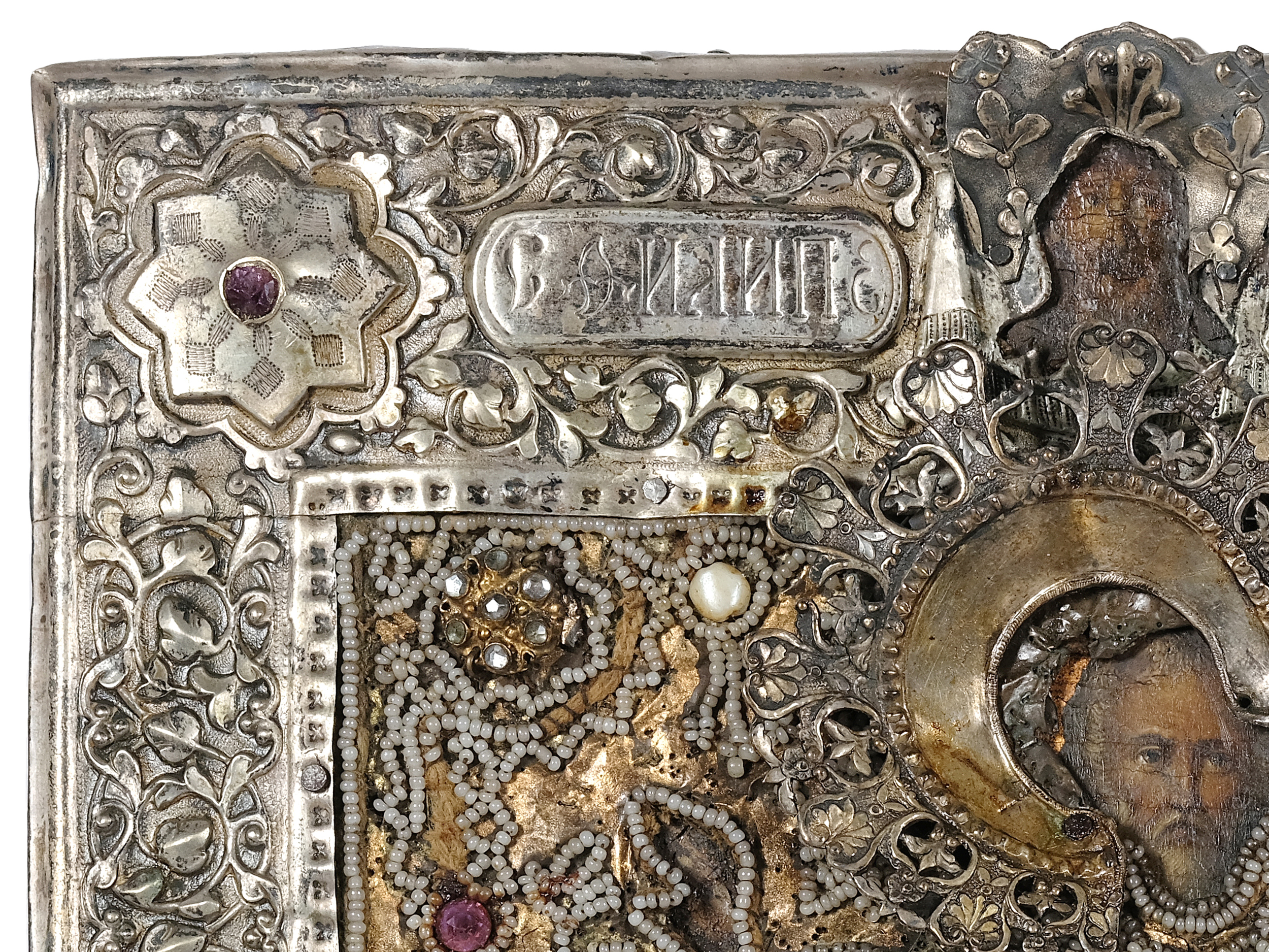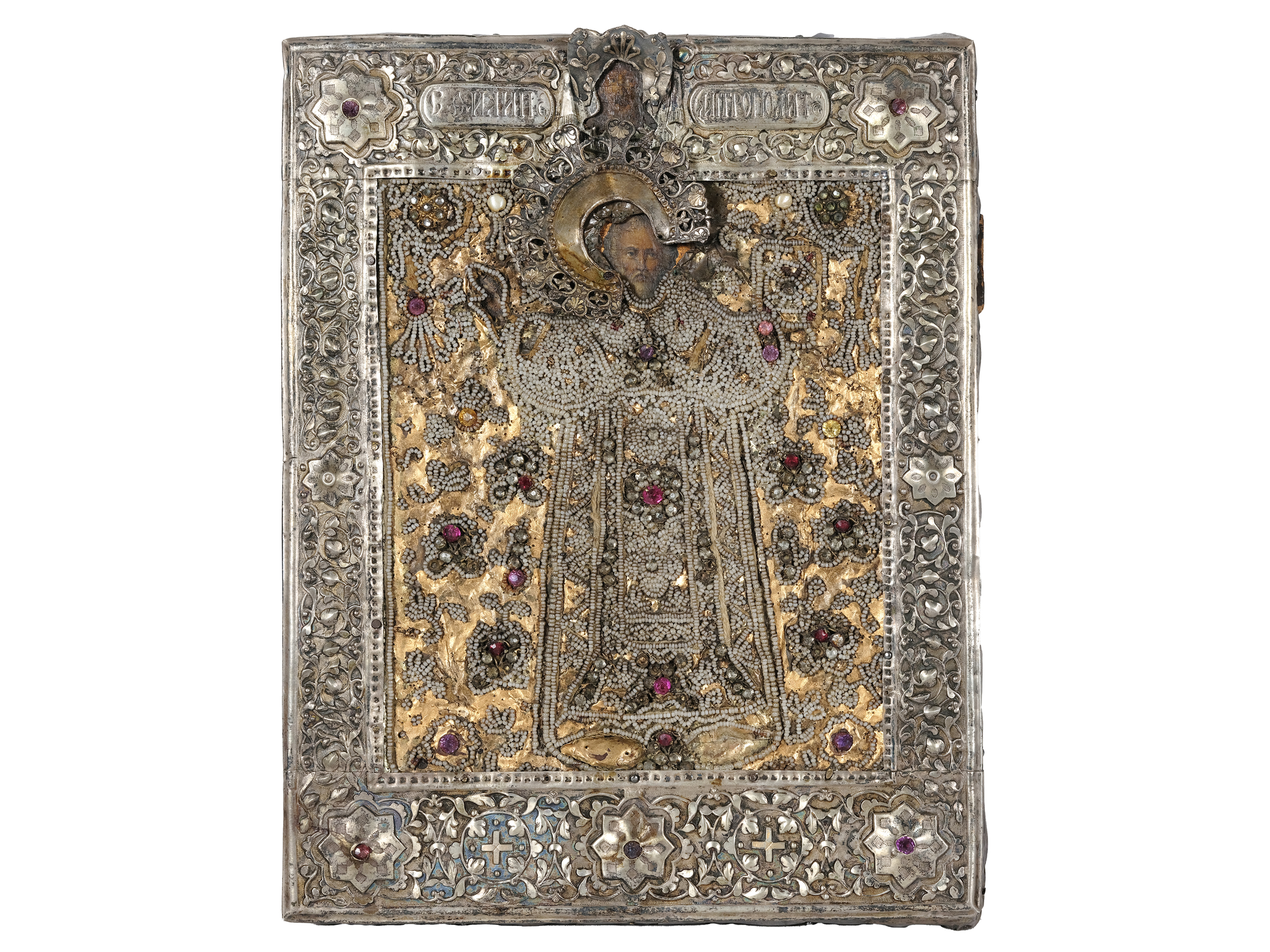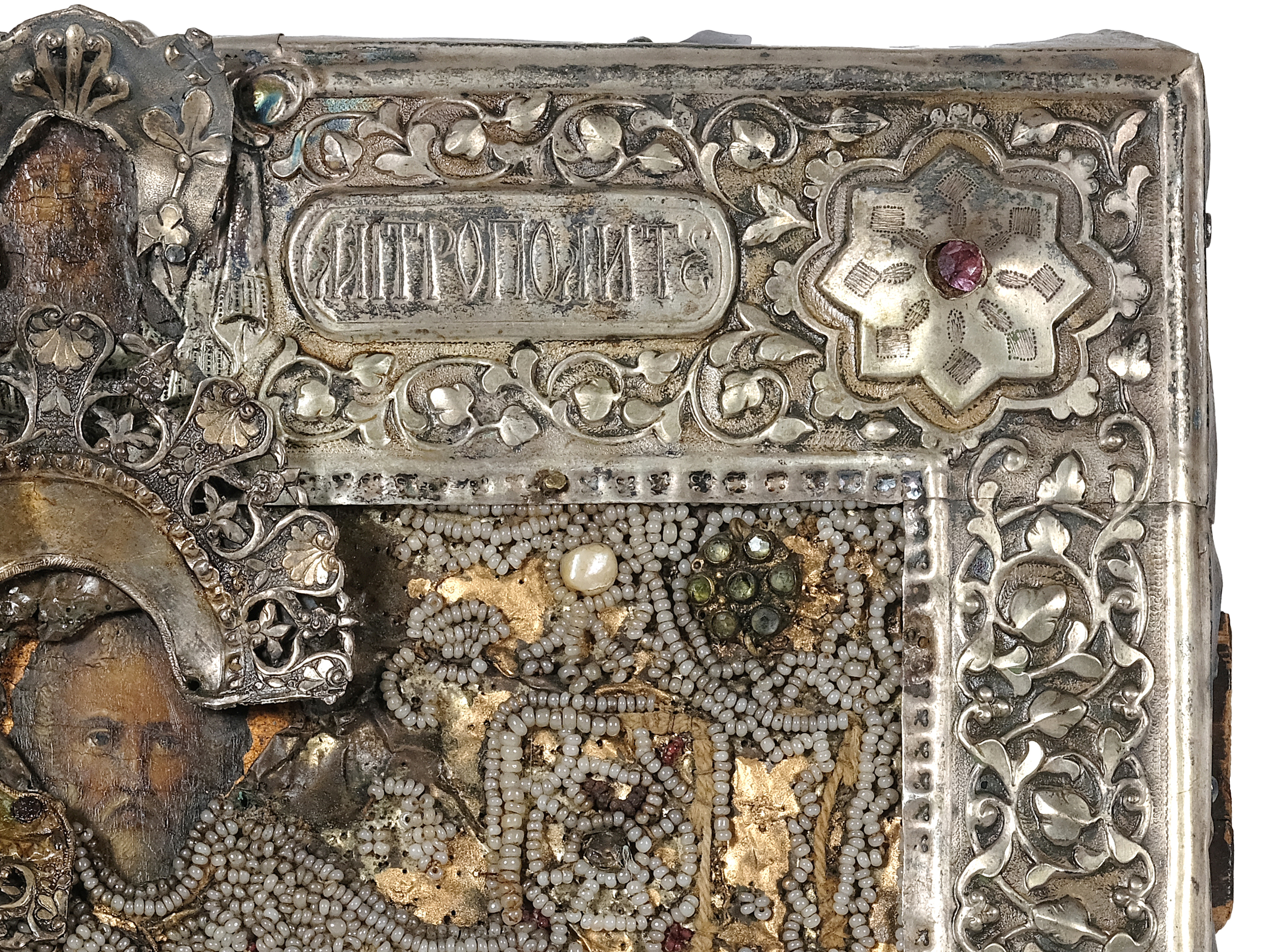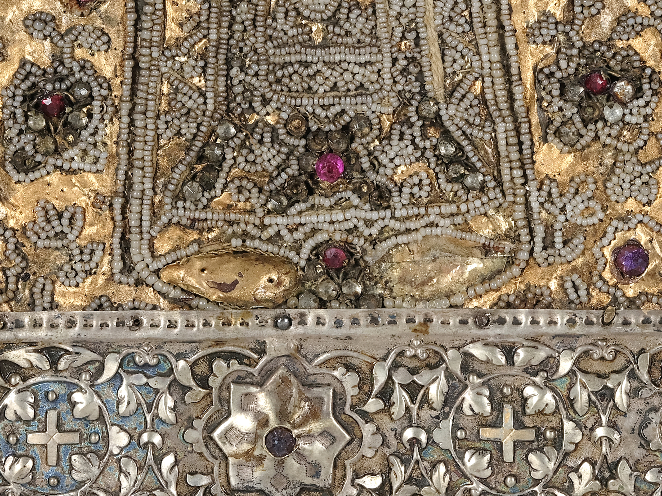 Oklad Metall versilbert mit Perlenstickerei 30 x 22 cm
