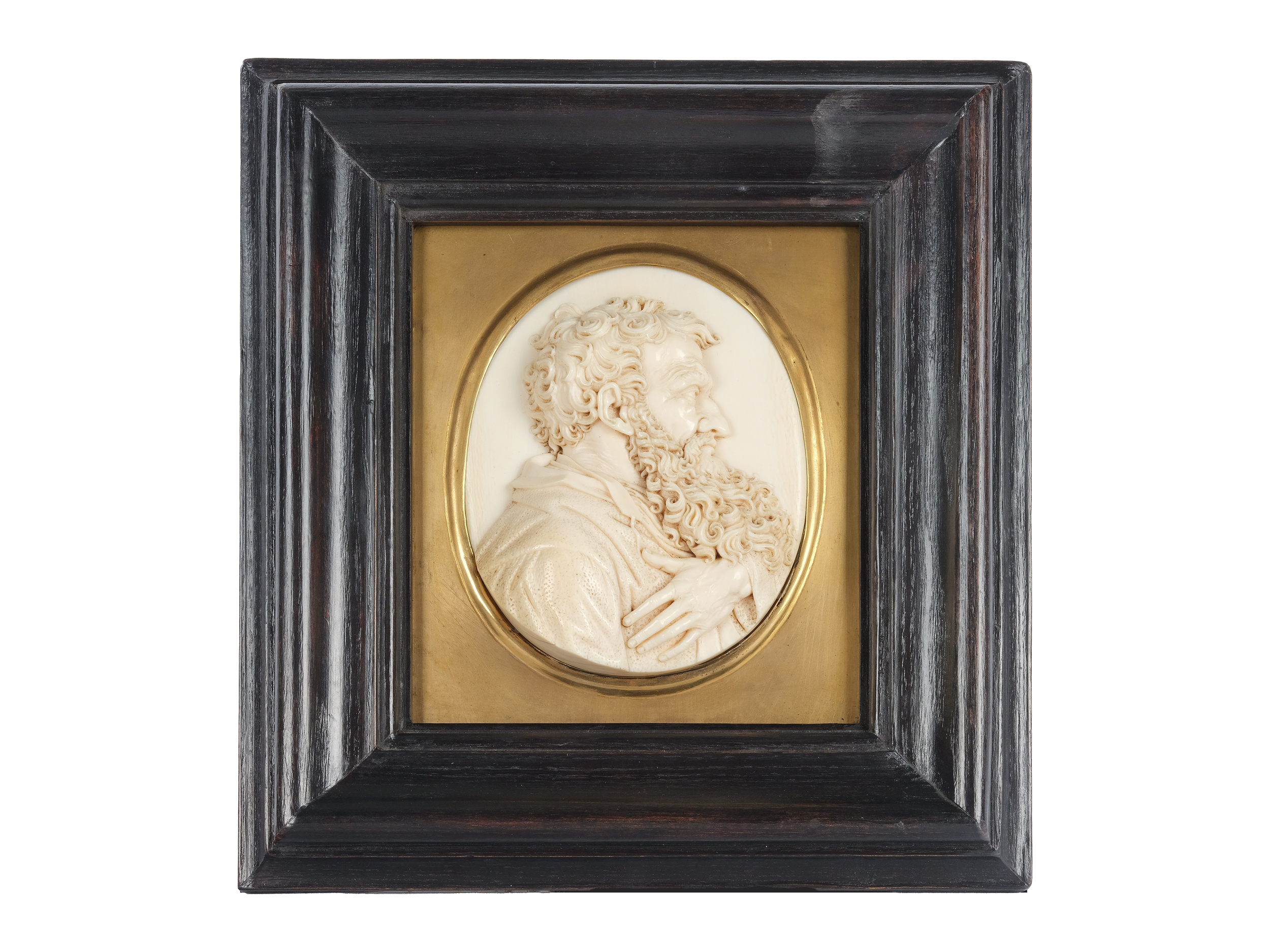 Dieses exquisite Relief des Hl. Paulus, geschaffen von Leonhard Posch, stellt ein herausragendes Werk in der Gattung der Elfenbeinschnitzerei dar. Posch, ein vielseitiger Bildhauer, Medailleur und Wachsbildner, wurde 1750 in Fügen geboren und starb 1831 in Berlin. Bekannt ist er vor allem für seine fein gearbeiteten und detailreichen Porträtformate. Seine Ausbildung und künstlerische Entwicklung in Wien und Berlin führten zu einem bemerkenswerten Œuvre von mehr als 200 Porträtmodellen, mit denen er die Gattung des Eisenkunstgusses revolutionierte.
