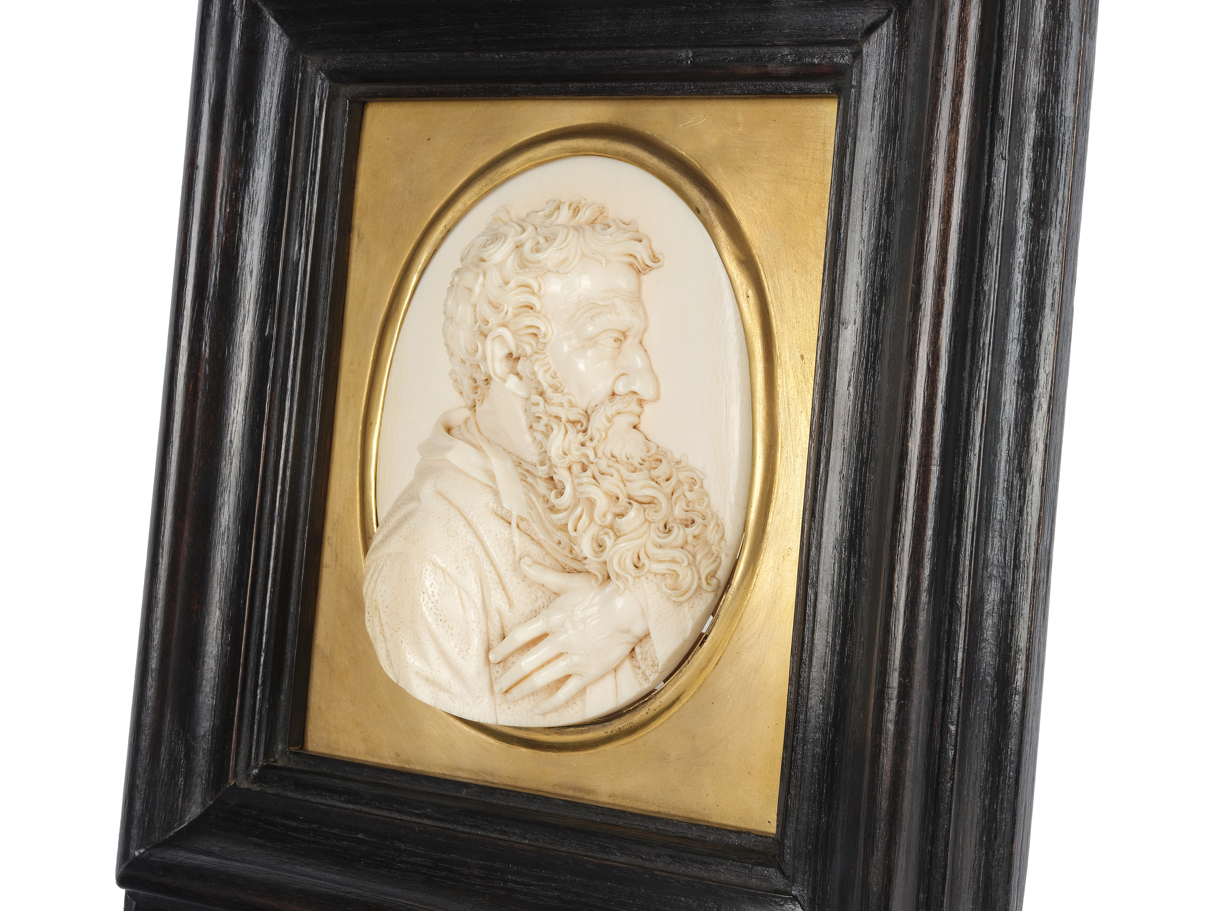 Elfenbeinrelief 14 × 11 × 3 cm, mit Rahmen 28 × 25 cm