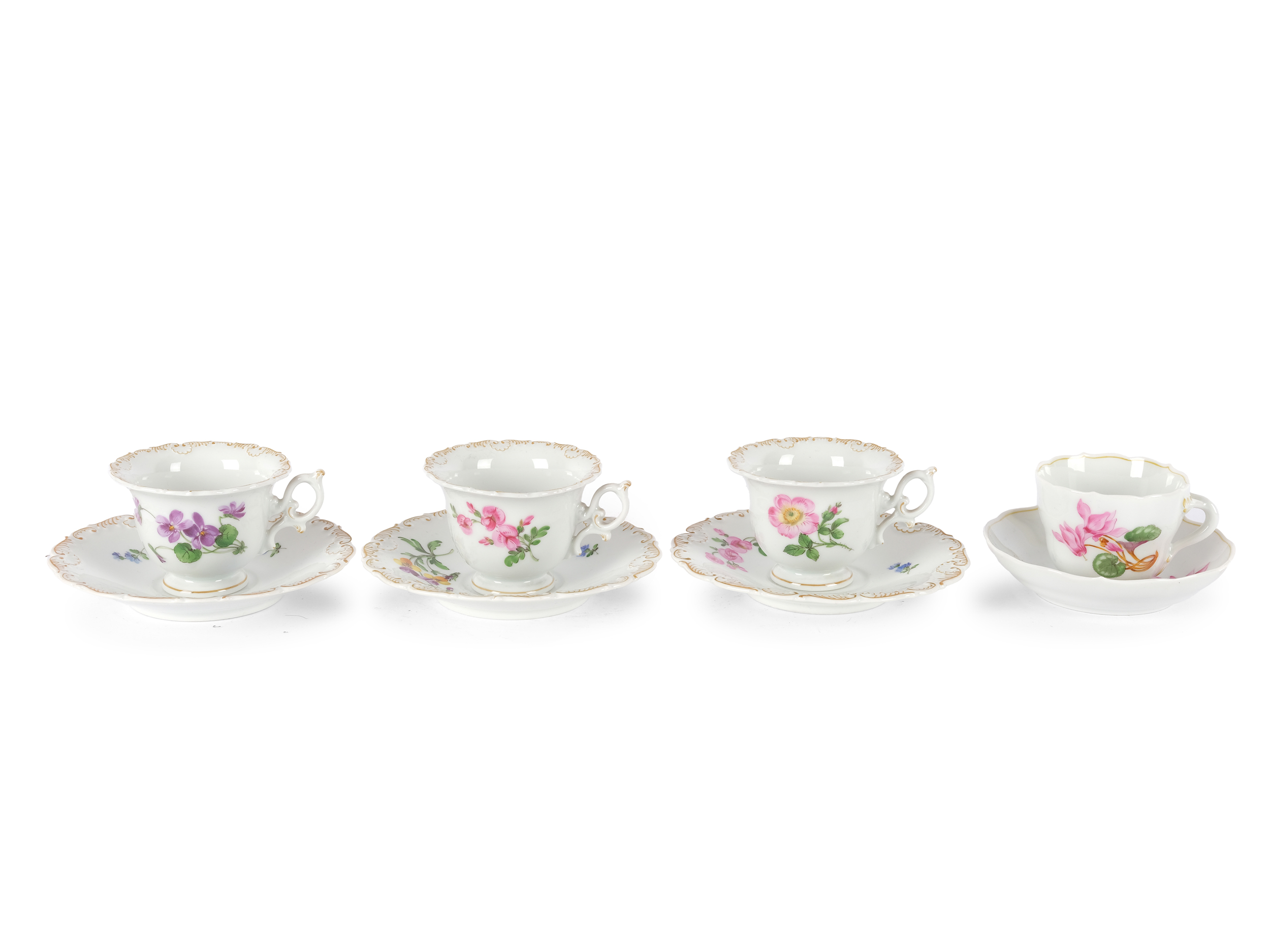 4 Tassen mit Untertassen