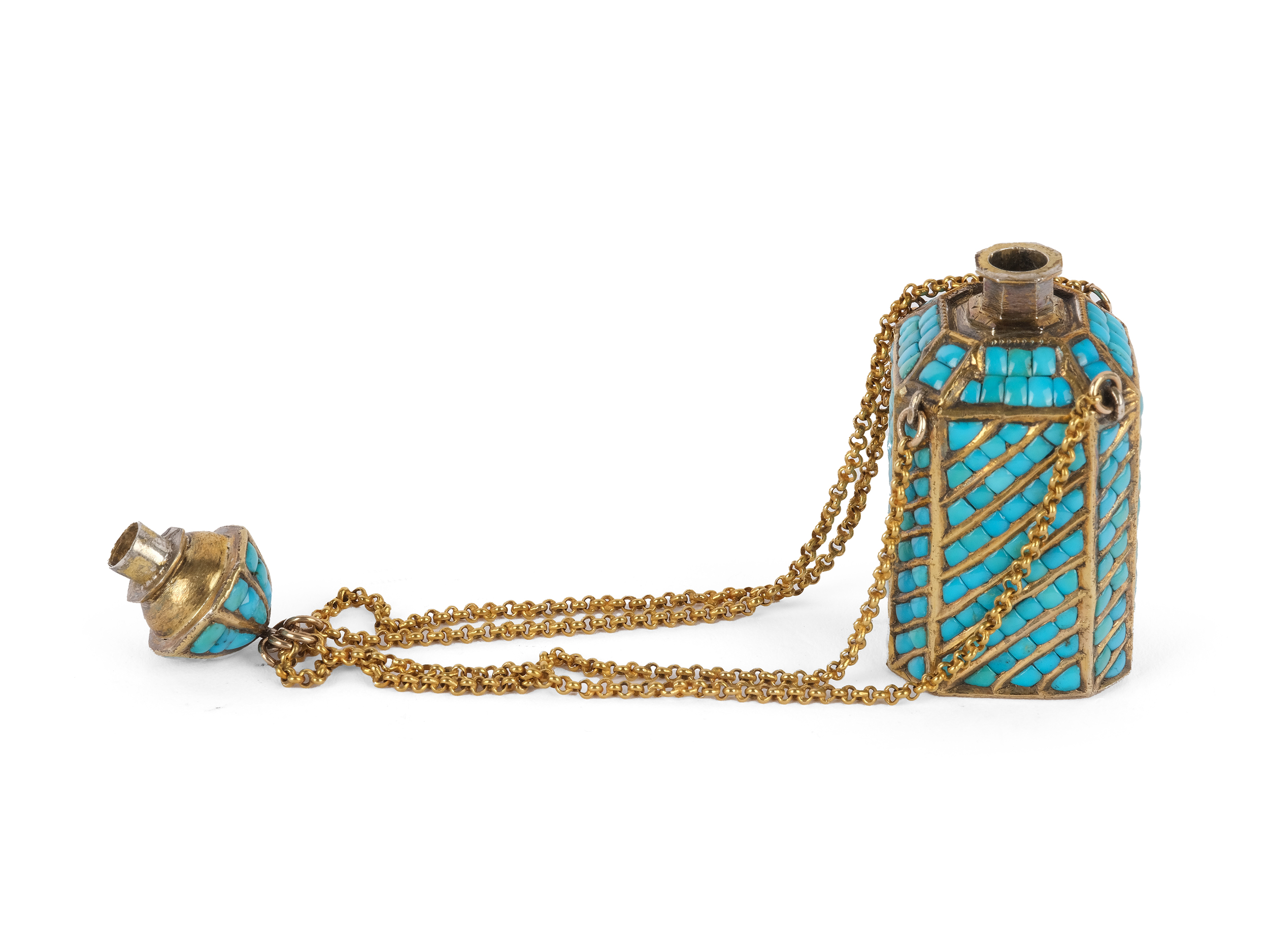 Wohl Silber vergoldet, besetzt mit Türkisen