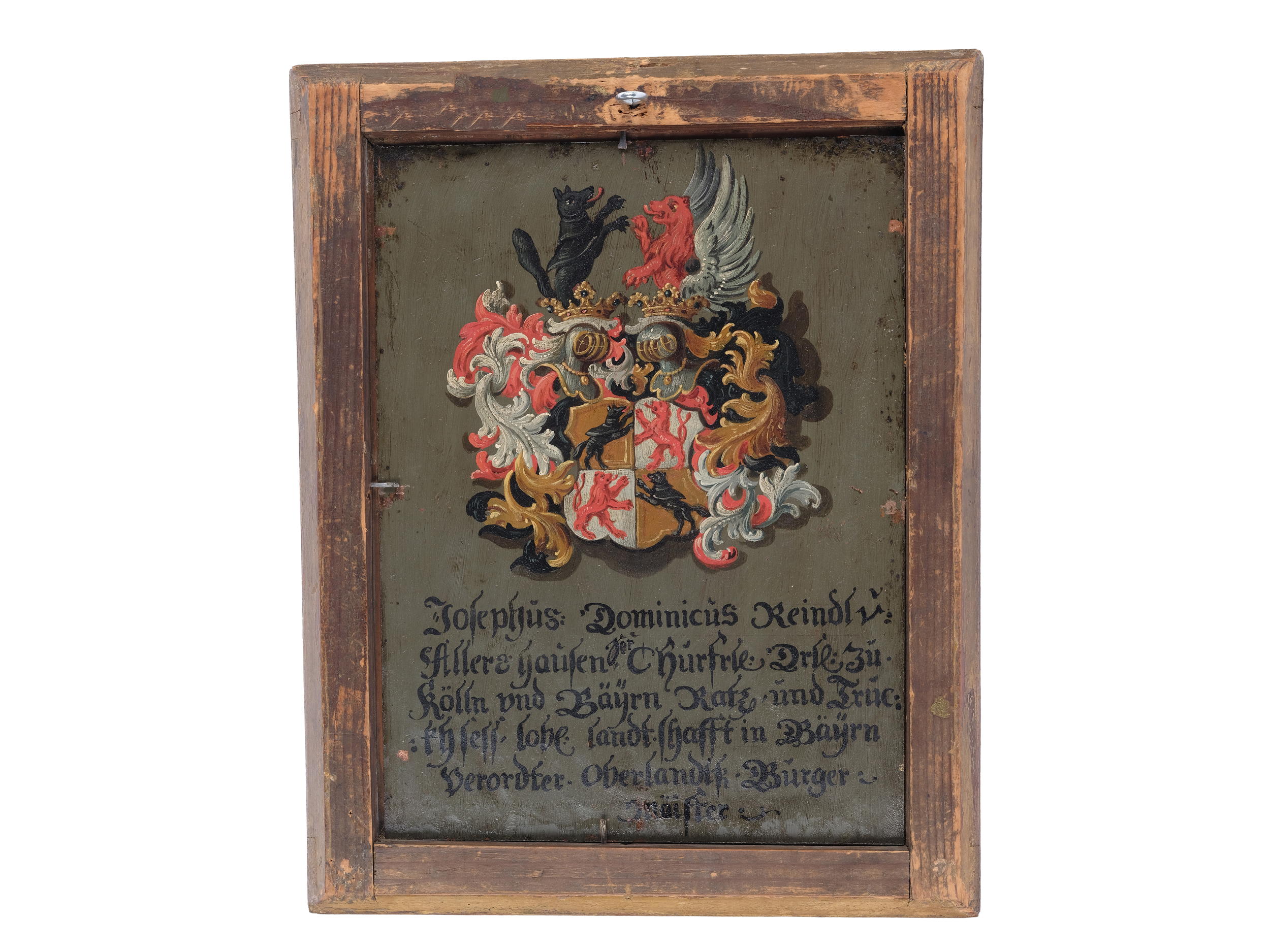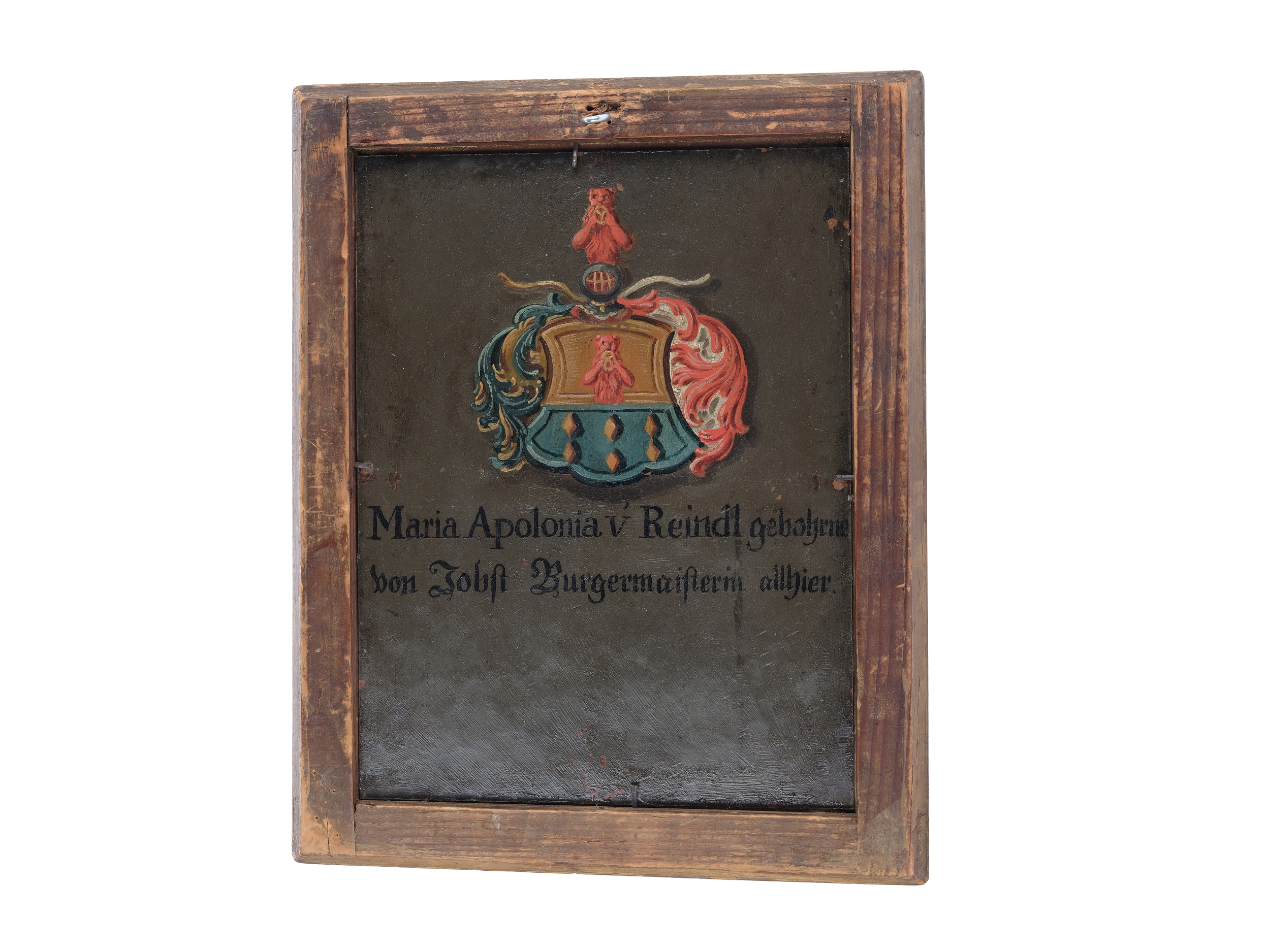 Rückseitig Wappenkartusche mit Beischrift