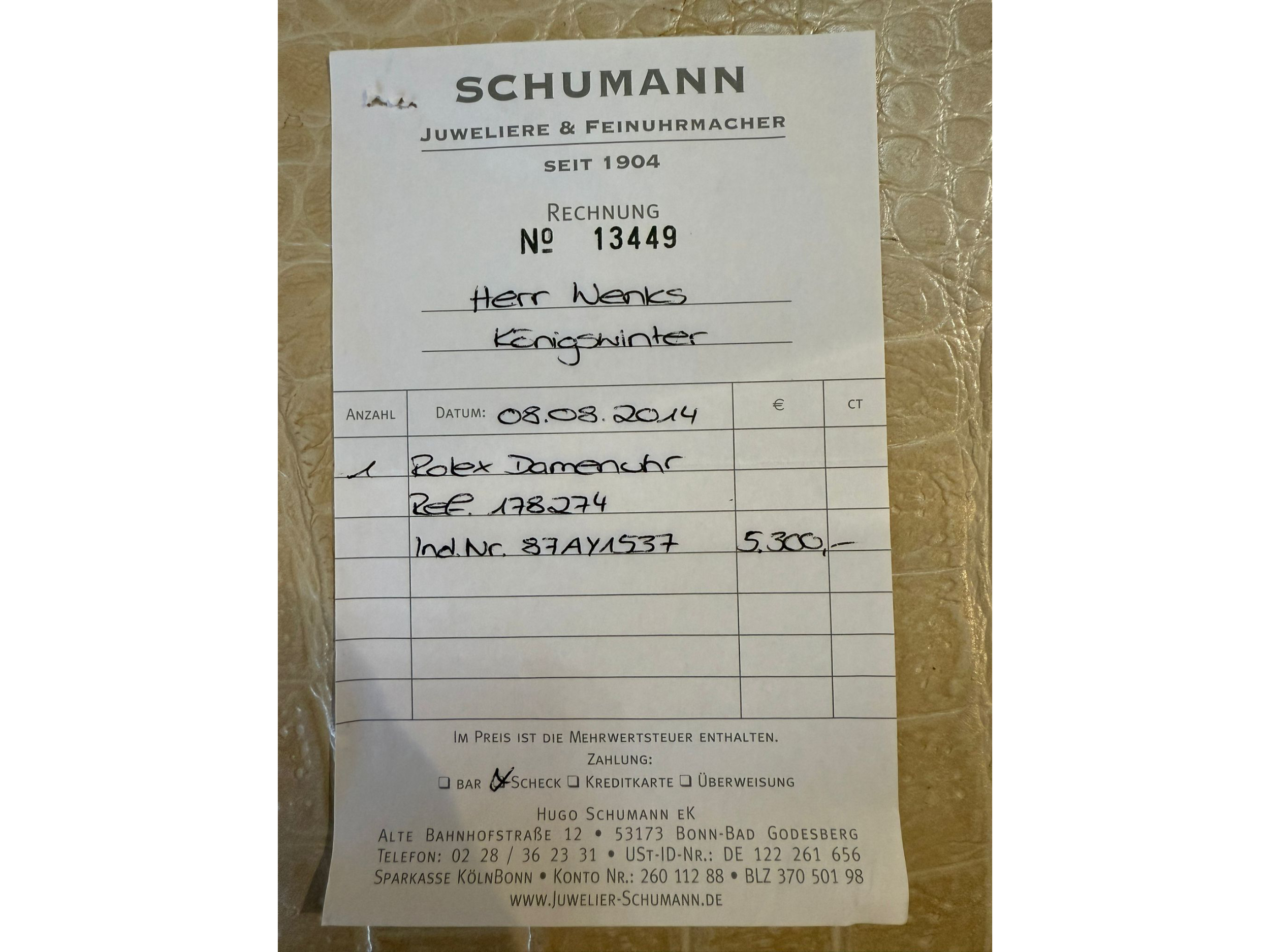 Rechnung vom 8.8. 2014 vorhanden