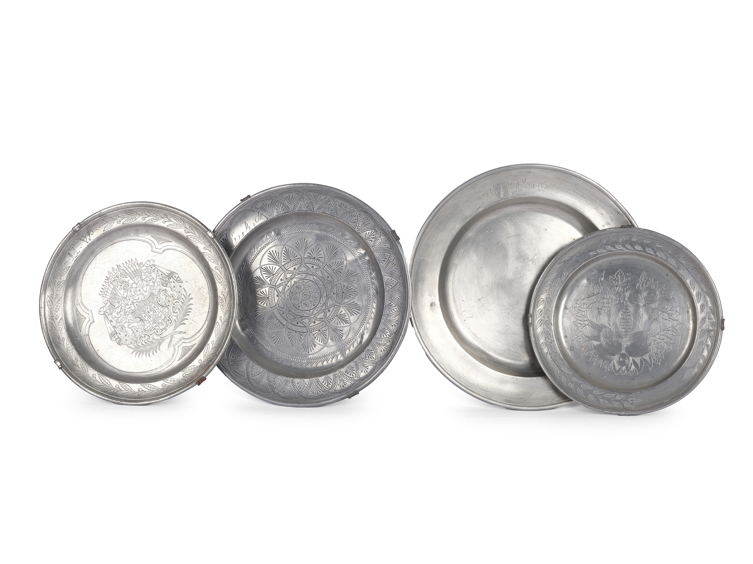 Set von 4 Zinntellern