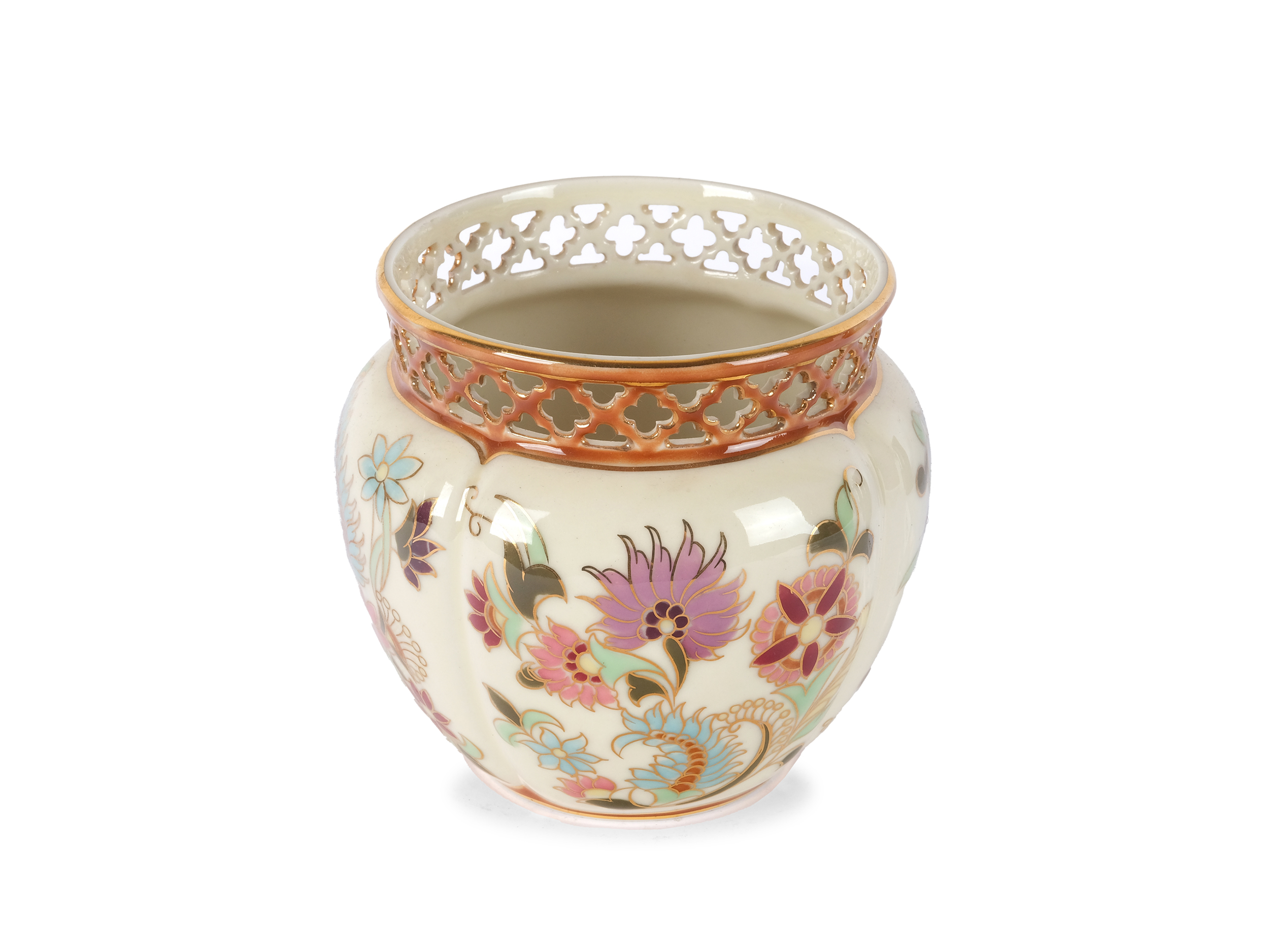 Keramik, buntstaffiert und vergoldet